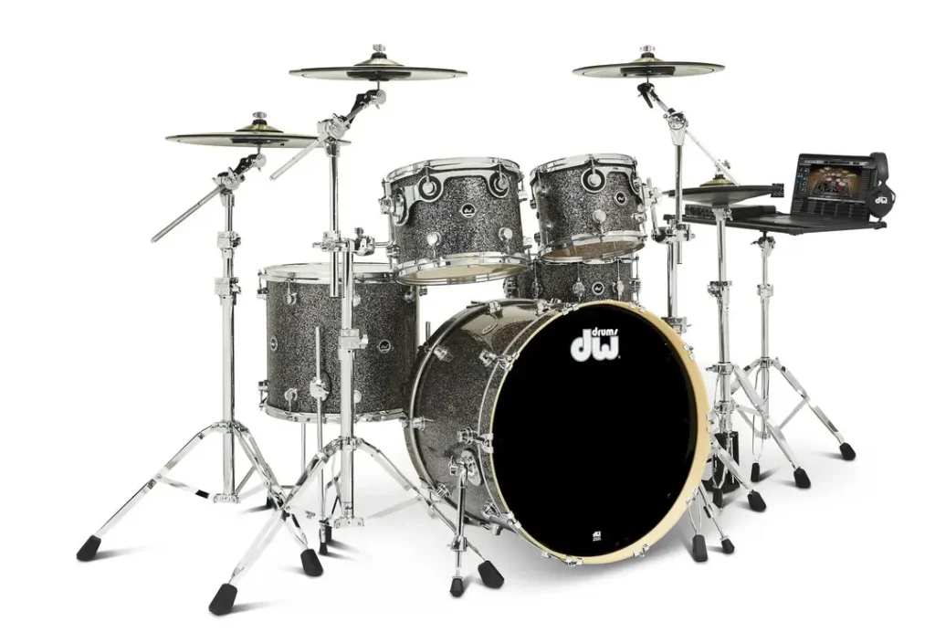 - Bouwkwaliteit & looks: Handgemaakte DW Maple shells met prachtige lakafwerking; robuuste hardware; visueel bijna niet te onderscheiden van een topklasse akoestische set (professionele uitstraling live).